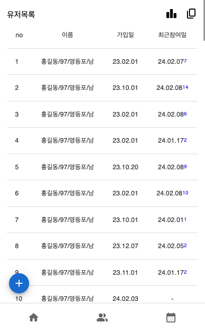 오픈카톡으로 배드민턴 동호회 운영도중 회원관리에 어려움이 있어 회원관리를 할수있는 간단한 앱을 만들고자 이 프로젝트를 시작하게 되었다 스터디도 할겸 PWA로 앱을 만들기로 하였습니다