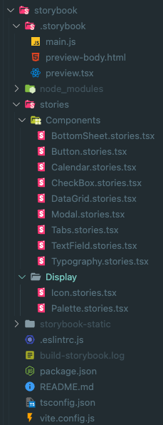 storybook-static: storybook build시 생성되는 정적 파일들입니다