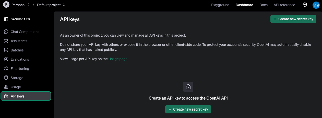 Openai api key 발급