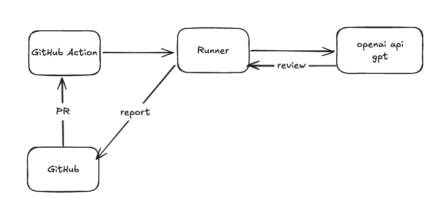 간단한 poc를 위해 오픈소스인 https://github.com/freeedcom/ai-codereviewer 를 fork로 가져와 runner로 활용하였습니다