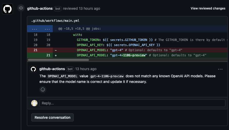 - name: AI Code Reviewer