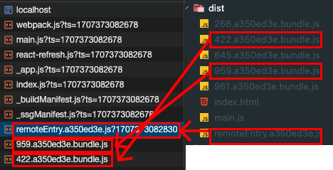 - XXX.js : 이외 청크입니다. 공유 의존성 청크과 Micro App 본문에 대한 청크입니다. main.js, remoteEntry.js내부의 런타임 처리를 통해 로드가 제어됩니다.